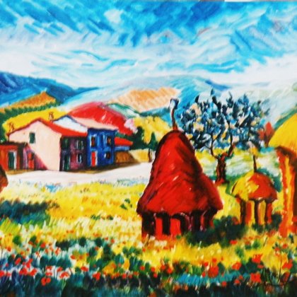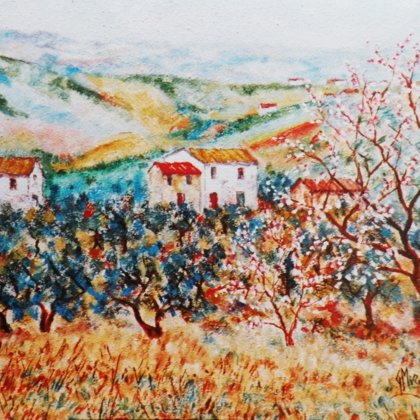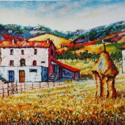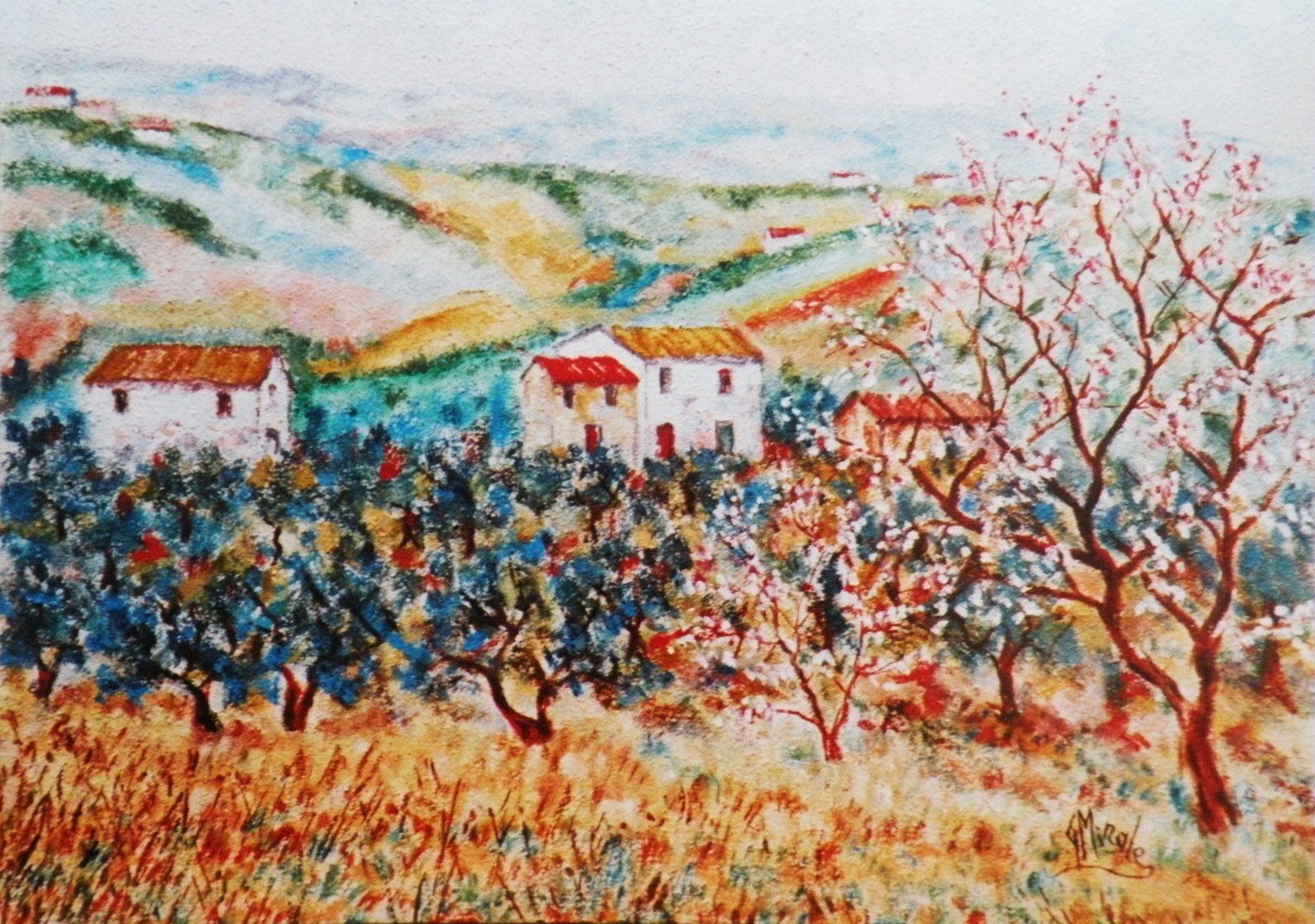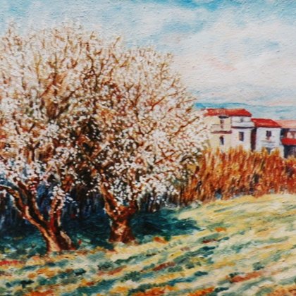 ROCCASCALEGNA-Paesaggio Parziale - Olio e sabbia su legno 30 x 17